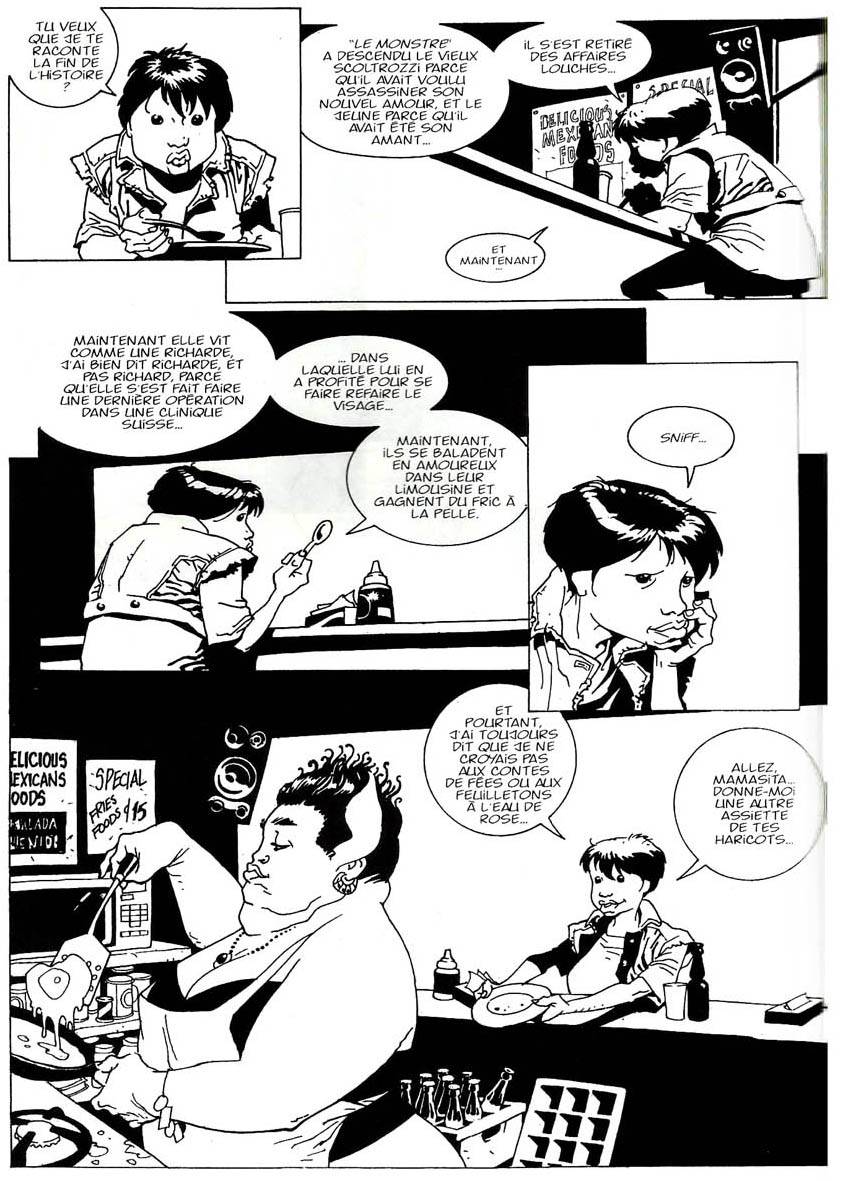 Chicanos fue, merecidamente, un gran éxito, con ediciones en muchísimos países de Europa, EEUU y Brasil. Probablemente eso se deba a que, de las tres series largas que Trillo y Risso producen para la Eura en los ´90, Chicanos es -lejos- la mejor dibujada de las tres, muy por encima de Borderline y Boy Vampiro. No sé si para esta serie Risso contaba con más tiempo para dibujar cada episodio, o si repartía el trabajo con un equipo de asistentes más afianzado, pero visualmente estos episodios están repletos de imágenes y secuencias maravillosas. La New York de Chicanos tiene ese caos, esa cacofonía, esa pátina de grasada que tenía la New York de Alack Sinner, potenciada por un manejo del claroscuro en el que Risso, además de mostrar su admiración por José Muñoz, anticipa mucho de lo mejor de 100 Bullets. No hace falta llegar a su etapa en Estados Unidos para disfrutar de un Risso perfecto, impecable en la narrativa, impactante en las expresiones faciales, infalible en el retrato de la vida cotidiana de esta ciudad de feroces contrastes y desigualdades. Te pueden no interesar en lo más mínimo los guiones, y aún así pasarla bomba con Chicanos solo por la calidad infernal que tiene el dibujo del León de Leones.