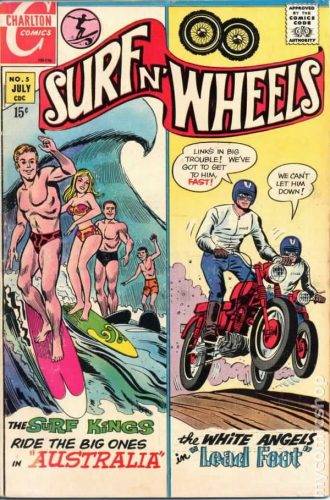Como ya mencionamos, el mercado de las revistas de historietas de “hot rods” (autos customizados para correr picadas… en Argentina habría sido la historieta del TC Competición) era cubierto exclusivamente por Charlton, que tenía incluso a un autor especializado en ese «género»: Jack Keller. Decidieron agregar un título más en el que, además de las historias de hot rods, habría historias de surf. Duró seis números. Cada revista tenía dos historias, una de hot rods (dibujada por Keller) y una de surf (hechas por Bill Fraccio, a veces entintado por Tony Tallarico). Aún hoy nos preguntamos por qué no funciono. ¡Cowabunga!