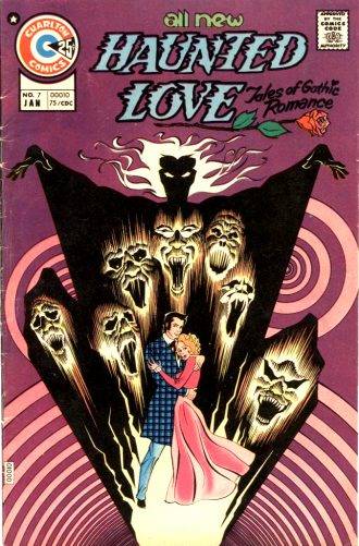 A comienzos de la década de 1970, las novelas de romances góticos (novelas románticas con toques sobrenaturales o “weird”) se pusieron de moda entre el público femenino. Tanto la Charlton como la DC –únicas compañías que todavía publicaban por esos años comics románticos de manera regular en Estados Unidos – decidieron tratar de llegar a ese mercado con títulos similares a los de las novelas. Haunted Love fue el intento de Charlton. Duró once números y dentro de las historias (todas autoconclusivas y de a dos o tres por ejemplar) te encontrás a autores como Joe Staton, Tom Sutton, Steve Ditko, Rich Larson, Pat Boyette, Sahno Kim y el español Enrique Nieto, todos con guiones de Joe Gill y Nick Cuti. Una joyita que no duró.