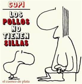 Los pollos no tienen sillas, editada por el mítico sello Jorge Álvarez a fines de los ’60 fue durante muchos años la única recopilación en libro de las historietas de Copi para Le Nouvel… (también se publican algunas en la actual etapa de la revista Fierro). En Francia, De Square y Glénat, entre otras, recopilan su obra completa, mientras que en España, en el ‘82, Nueva Frontera publica Mamá, ¿por qué yo no tengo banana? y Anagrama hace lo propio con Las Viejas Putas. Más cerca en el tiempo, Horacio Tarcus reúne en libro aquellas primeras ilustraciones que Copi realizara para Resistencia Popular.