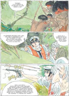 Díaz Canales capta perfectamente el espíritu de las aventuras de Corto Maltés, para bien y para mal. Como la mayoría de las historias extensas de Pratt, Bajo el Sol… tiene viajes, silencios, momentos en los que la narración se vuelve muy parsimoniosa, personajes que existieron en la realidad mezclados con creaciones ficticias, promesas inquebrantables que explican comportamientos medio extraños, lealtades, traiciones, convicciones que parecen férreas y loables pero finalmente responden a un interés mezquino, personajes que reciben muchísima atención para después morir o desaparecer sorpresivamente, diálogos ingeniosos repletos de ironía, in crescendos en la tensión que aparecen en el momento justo, mujeres que encandilan a los hombres, bajadas de línea acerca de cómo la modernidad mostraba la hilacha desde temprano y amenazaba (allá por 1915) con llevarse todo puesto…