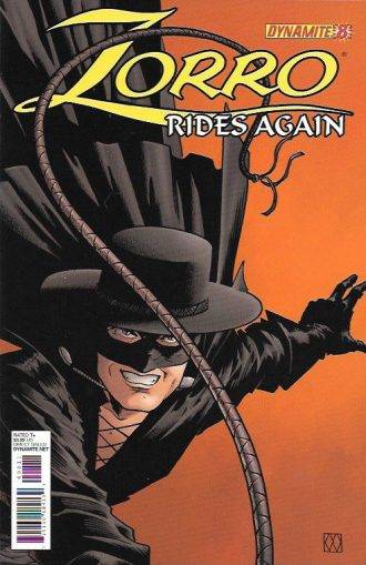 El siguiente sello que contó en forma de comics las aventuras del Zorro fue Dynamite, que puso nada menos que a Matt Wagner a cargo de los guiones y a Francesco Francavilla y Cezar Razek en los dibujos. La serie alcanzó a tener veinte números entre el 2008 y el 2010. Además, un descendiente del Zorro aparece como uno mas de los participantes de la miniserie Masks , reunión de personajes del Pulp publicada por Dynamite en el 2013. Finalmente tendrá una miniserie en el 2015 donde junta al personaje con Django Unchained , el protagonista de la película de Quentin Tarantino, con un guion co-escrito por el propio Tarantino (al menos seguro que ayudó en el plot) y Matt Wagner, y dibujos de Esteve Polls