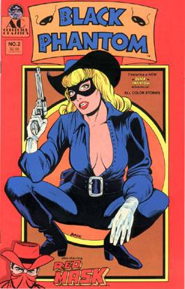 De ahí en adelante, cada vez más historias de Tim Holt aparecerían con él disfrazado como Redmask para enfrentar a sus enemigos, tanto en la revista titular como en el título antológico Best of the West (donde compartía espacio con Ghost Rider, el Durango Kid y el héroe indio Straight Arrow). Villanos que ya no eran solo los típicos ladrones de ganado y bandidos varios del Oeste, sino que empieza a enfrentarse a criminales un poco más cercanos a las tradiciones pulp. Villanos como The Cape, Whip Woman, The Man in the Iron Mask y similares, conforman una galería de “supervillanos” poco común entre los héroes del Oeste. Pero particularmente una villana aparecida en el nº 25 llamará la atención del público y se convertirá en una heroína enmascarada por derecho propio: Black Phantom.