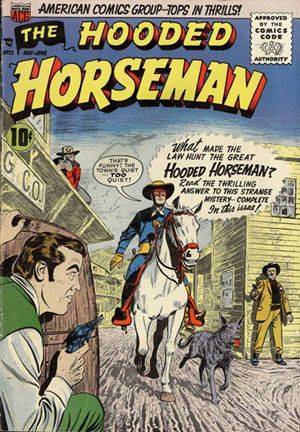 El personaje apareció por primera vez en el nº 14 de la revista Blazing West (diciembre de 1950) en una historia de Richard Hughes dibujada por Odgen Whitney , un dibujante muy sólido que venía de la década de 1940 y seguiría contribuyendo regularmente a todos sus títulos hasta el cierre de la editorial. Bud Fraser es el hijo del sheriff que, cuando a este lo matan, se pone una máscara y combate a los crímenes en el oeste como el Hooded Horseman, acompañado por su perro Flash, en unas historias bastante livianas , a veces con momentos graciositos y con el personaje rompiendo algunas veces la cuarta pared. Por cierto, deja unas horcas hechas con cuerda como señal que paso por cada historia. La serie duraría hasta el nº 20 de Blazing West… pera seguir en el nº 21 de The Hooded Horseman, que duraría hasta el nº 27 (febrero de 1954).