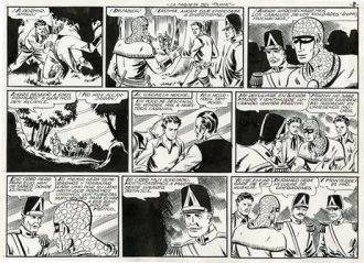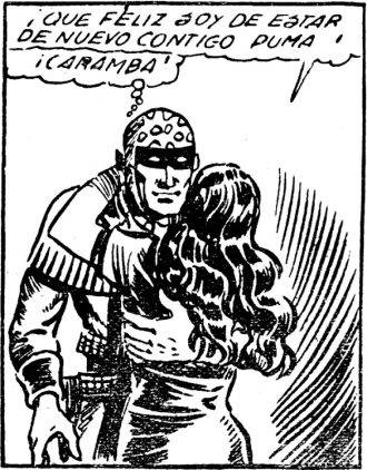 Pero para ese mismo año, la poderosa editorial Marco se saca de la manga una versión enloquecida del cowboy enmascarado con El Puma. Creado por Boixcar (seudónimo de Guillermo Sanchez y Boix, un dibujante que llevaba unos años en la editorial produciendo varias series), El Puma comienza con los clichés típicos del subgénero: un militar mexicano se subleva y mata al legítimo gobernador de Chihuahua. Su hijo decide que hay que vengarse y está pensando qué hacer, cuando ayuda a un indígena anciano atacado por uno de los soldados del usurpador. Y el anciano le da unas instrucciones para convertirse en un héroe vengador mítico pronosticado por las leyendas: El Puma. Consigue un traje enmascarado que habría usado Moctezuma y debe subir a una montaña que hace siglos que nadie sube. Lo hace… y acá entramos en terrenos de “weird western” totales. Porque la montaña oculta una ciudad perdida azteca, gobernada por la reina Sigda, que le otorga dos armas: una suerte de boomerang y un puñal que, a la mínima herida, hace que la persona envejezca 400 años de una vez. Y El Puma va a pasar sus aventuras entre la lucha para derribar al gobernador mexicano con las aventuras de ese mundo perdido… donde hay dinosaurios, neandertales, gorilas gigantes, tesoros ocultos y la mar en coche. Todo junto y entreverado en unas historias sin respiro donde podemos pasar del asalto de un tren a una invasión de dinosaurios a Chihuahua, pasando por momias que lanzan rayos mortales por los ojos, ataques de pieles rojas y bandoleros charros, hasta culminar con una explosión volcánica que arrasa con la montaña donde está la ciudad perdida. Finalmente, nuestro héroe derrocará al malvado gobernador y se casará con la reina Sigda (que sobrevive a la explosión de su ciudad). Todo en veinticuatro números.