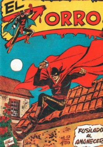 Ahora, en vez de tener un clon de El Zorro, ¿por qué no usar el nombre original y listo? Eso es lo que deben haber pensado en la editorial Ferma cuando en 1956 sacaron la serie El Zorro. Que por cierto, no calca del personaje original todo, sino que además entresaca de El Coyote. Porque este Zorro se llama Don César (como el Coyote), se enfrenta a los yankis que han ocupado California (como El Coyote), pero pelea con espada y látigo (como el Zorro) y tiene un traje similar al del personaje de Johnston McCulley (o al menos a la versión cinematográfica de Douglas Fairbanks y Tyrone Power). Escrito por Joan Llarch y dibujado –de forma poco espectacular- por Juan Rafart, este Zorro no oficial (y diría que ni siquiera legalmente licenciado) se publicó durante 25 números y un álbum extraordinario hasta 1957. Aparentemente habría una versión anterior hecha por la pequeña editorial Alas en 1954, pero no tengo suficiente material para confirmarlo.