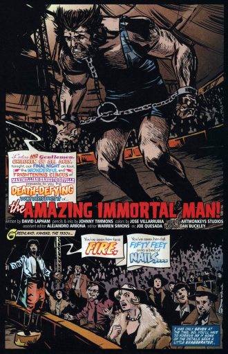 También en el 2008 publica Wolverine: The Amazing Immortal Man and other bloody tales. Aquí habrá tres historias cortas donde nuevamente Wolverine es una excusa para contar algo. Las primeras dos son simplemente geniales. Argumentos brillantes y hermosamente narrados, mientras que la tercera es bastante aburrida. Empezamos a notar la fascinación de Lapham por las historias de terror (muy ligeramente tocado en Terror Inc.), algo que en unos años explotará en su totalidad de una manera poco elegante.