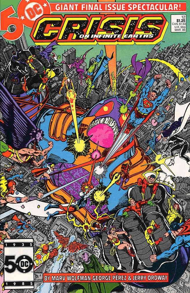 En la pre-historia de los infinitos eventos crossovereados, podemos encontrar -ya en 1964,-lo que años después se llamó Zatanna’s Search, apenas una aventura que corría por varios títulos (Hawkman nº 4, Detective Comics nº 336, The Atom nº 19, Green Lantern nº 42, Detective Comics nº 355, Justice League of America nº 51 y si sos muy completista, DC Special Blue Ribbon Digest nº 5), con apenas un valor arqueológico -si no afectivo- por ser el primero y muy Silver Age. Pero todos sabemos que la madre de los crossovers intra-editorial en DC es la ya mitológica Crisis on Infinite Earths de 1985, a cargo de Marv Wolfman, George Pérez y compañía, con más de 40 crossovers oficiales. El éxito de ventas, la mejora de las ventas de los otros títulos, los personajes muertos, las Tierras eliminadas y una nueva continuidad que supuestamente arreglaba todas las cagadas previas que DC arrastraba desde 1935, entronizaron a esta saga y a este modelo de ‘evento anual’.