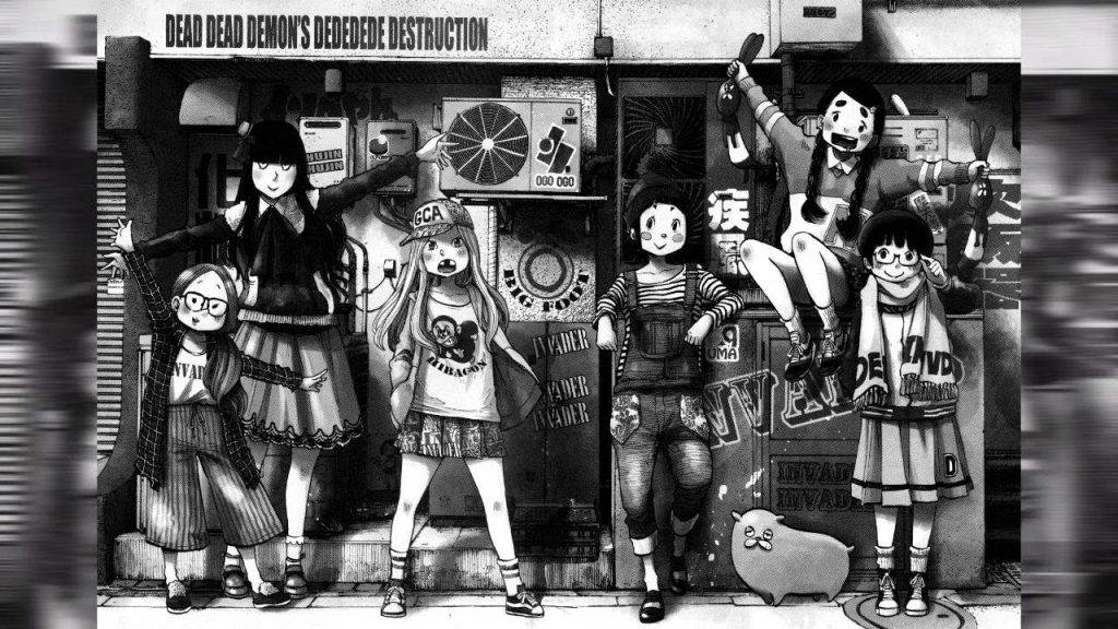 Pero quizás lo más llamativo de Dead Dead Demons a nivel gráfico sean los diseños de personajes, aunque sea de los principales, mucho más cartoon, más caricaturizados, lejos de sus diseños más “serios” de mangas previos (o contemporáneos, como es el caso de Reiraku, la miniserie que dibujó en 2017 durante una pausa de DeDeDeDe). La realidad es que acá explota más un estilo simplificado contrapuesto a fondos detallados y complejos, algo que había probado también en Yuusha Tachi (Héroes), que a su vez está inspiradísimo en las obras de Shigeru Mizuki.