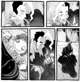 Por supuesto que nada de esto sería posible de ver si no fuera por el trazo de un Matías de Vincenzo con muchísimas pilas e inventiva. El binomio Canessa/De Vincenzo es clave para el éxito de la historieta: muchas cosas se cuentan de forma visual, y Matías la resuelve con una narrativa sencilla, clara. No solo sus personajes son expresivos, sino el estilo de dibujo, suave por momentos y ásperos en otros, sabe ilustrar la tensión y el misterio que necesita una historia de este calibre, con un encanto símil amerimanga que no desentona en lo más mínimo. Estamos frente a un artista que sabe cambiar de registro en varios momentos, con una versatilidad que lo convierte en uno de los dibujantes más interesantes de estos últimos años, uno que sabe ser original y aportar con dignidad a la historia, sin querer ser más que el guion o sin tirarse a menos.