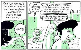 El árabe del futuro es claramente el comic francés del momento. Es fresco, es atrapante, tiene humor y drama. El dibujo acompaña perfectamente a la historia, en un tono que equilibra inocencia y humor, pero que sabe cómo y cuándo resaltar las acciones que merecen seriedad. Es interesante remarcar que Riad utiliza una paleta especifica de colores para cada país, con lo cual demarca muy fácilmente los climas y los sentimientos en cada locación.