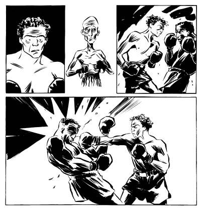 Y después está el tema del boxeo: como decía en el arranque de la nota, fue el título lo que me vendió la obra. Pero una vez dentro de ella, ese aspecto no sobresale. O la vida como boxeador de Harry Haft fue poco interesante o a Kleist (tengo que echarle la culpa al autor del comic, no puedo responsabilizar a Alan Haft) no le interesó hacer foco en ella. Sea una o la otra, el título es un engañapichanga de aquellos. Sí, tenemos escenas de peleas en los campos, vemos algo del torneo europeo de 1946 y también su carrera como boxeador en Estados Unidos (quizás la que tiene mas desarrollo). Pero todo lo otro es tan pesado, tiene una carga tan fuerte, que queda el boxeo en un lógico segundo plano. Como dice el propio Haft en una cita al principio del libro: “Después de todo lo que he pasado, ¿qué daño puede hacerme un hombre con guantes de boxeo?” y creo que eso resume a la perfección la sensación que a uno le queda después de leer la obra.