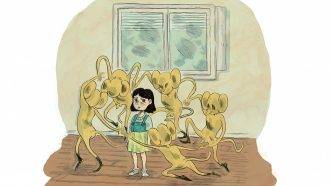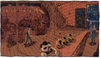 Viñeta a viñeta, las verdaderas cucarachas y demonios quedan en evidencia a partir de la subjetividad plasmada en la imaginación de Lucía. Las representaciones que hace de su propia realidad, le permite escaparse de todo aquello que vive en casa, pero a la vez sublimarlo y transformarlo sin perder su significado. En los momentos de mayor terror, veremos como la sombra del progenitor que acosa a Lucía se transmuta en ratones antropomórficos y perturbadores que parecen jugar con ella. La cucaracha oscura e intimidante también se insinuará en casi toda la obra simplemente como una figura sombría o diablos que rodean a su cazador cuando se encuentra sola en algún rincón. Entre todos esos personajes y escenas que nos evocan claramente al realismo mágico, solamente una secuencia resulta extremadamente cruda, aunque la escena no desentona para nada con el tono de la obra ya que se destaca el tratamiento extremadamente cuidado por parte de la artista. En ese ir y venir a través de las tinieblas, la figura de ‘Dios’ parece contraponerse con el infierno, representada a través de un bidet con el que Lucía mantiene conversaciones que habilitan al lector y a la lectora a comprender un poco más la psicología del personaje.