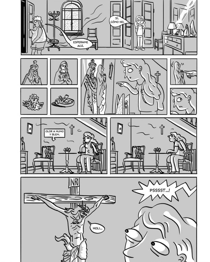 Ya de vuelta a la hora ‘correcta’, las cuatro de la tarde, logra ingresar a la vivienda. La señora se llama Elvira, la encargada de la residencia. Elvira le dejar recorrer un poco el lugar y le hace firmar un papel en el que Marina se tiene que comprometer con algunas cláusulas bastante coercitivas que parecen de principios del Siglo XX. Se trata de un lugar exclusivo para mujeres y es lúgubre y poco amigable. Se encuentra repleto de imágenes de Cristo, cruces, alfombras bastante antiguas y polvorientas. En su breve ‘baño de realidad’ Marina se da cuenta de que, mientras resida allí, su libertad se va a ver bastante acotada, puesto que será como viajar en el tiempo, a un pasado cuya datación corresponde a 100 años atrás. Sin embargo, es la única opción que pueden pagar su padre y su madre, puesto que en comparación a las demás pensiones, el precio es mucho más accesible.
