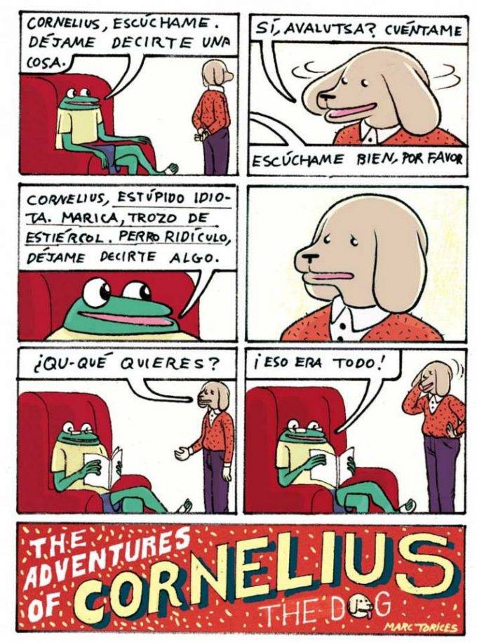 Apa Apa Comics es una editorial independiente ubicada en Barcelona, que se jacta de publicar los comics de la gente que admiran. Los comics que a ellos les gusta leer. Y de entre el vasto catálogo que tienen, esta vez voy a reseñar su última publicación: La alegre vida del triste perro Cornelius, escrita y dibujada por el catalán Marc Torices.