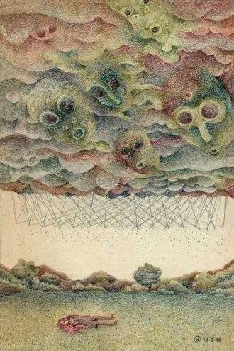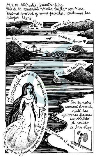 Desde el primer momento en que se tiene en las manos el nuevo trabajo de Delius, es imposible no darse cuenta de que sin dudas es un libro único y muy personal. Nos encontramos ante páginas muy ricas en cuanto a dibujos y palabras. Dibujos en blanco y negro, simplemente realizados a tinta, en los que abundan los firuletes y los adornos, se entremezclan con párrafos a veces más largos y otras veces más cortos, para superponerse con frases escritas en diferentes direcciones y conceptos en portugués que nos ponen en contexto y nos hacen emocionar.