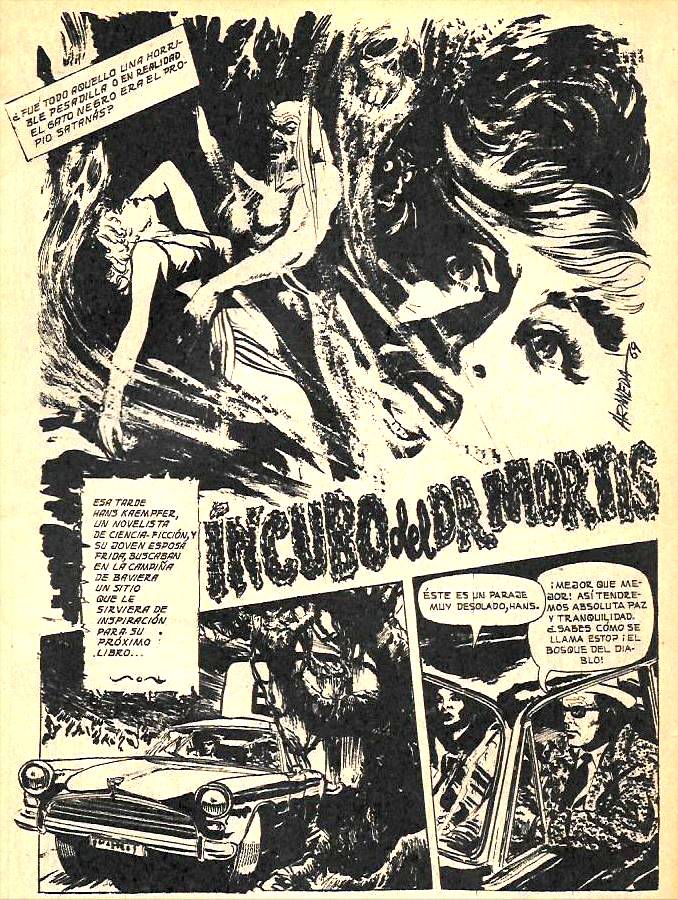 A lo largo de los siglos, Mortis aprendió diferentes saberes que aplicará a todas sus maldades, al tiempo que tiene dominio absoluto sobre los muertos, como un verdadero nigromante. Tiene como escondite un sepulcro en cada cementerio. Aquel mausoleo que no tenga cruz, será habitado por él. A pesar de ser perseguido por diferentes entes policiales del mundo, incluso el mismísimo Scotland Yard, la ciencia requirió de sus saberes a fin de poder desentrañar el secreto de de las bombas V1 y V2. Para ello se recurrió al espiritista Dr. Zikaroff , antiguo discípulo de Mortis, quien llevará a los militares hasta un recóndito lugar donde descasan sus restos a fin de realizar una sesión. Finalmente se darán cuenta de que Mortis los ha engañado al quedarse con lo revelado por el revivido científico alemán, que se desarma putrefacto frente a los ojos de sus interpeladores.