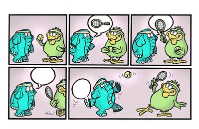 JR: Dante Elefante surge medio de casualidad. Me pidieron una historieta para la web Imaginaria que hable del lenguaje del comic. Yo venía dibujando siempre elefantes en un cuaderno de bocetos. Elefantes flacos, altos, gordos, en dos patas, en cuatro, etc. Entonces hice la historieta con un elefante, aunque podría haber sido un humano u otro animal el que la protagonizara, porque la primera historieta hablaba sobre los globos de diálogos. Como me gustó, hice dos historietas más (eran de media página) y se las presenté a Spirou, lugar donde hacía ya más de un año que estaba mandando material. Dante Elefante tuvo la suerte que otros personajes que les mandé no tuvieron: ¡gustó! Me preguntaron si tenía 10 páginas del personaje. “Obvio que sí” respondí y me puse todo el fin de semana a trabajar en ello, porque solo tenía 3. Y ahí empezó. Me iban comprando paquetes del personaje cada semana. Llegué a publicar en la revista durante casi dos años.
