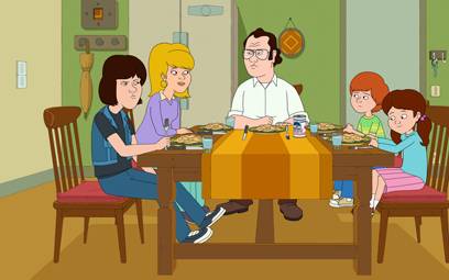 Una serie animada cuyo protagonista es un norteamericano de unos cuarenta y pico de años, gruñón y desagradable; casado con una ama de casa resignada que hace todo lo posible por mantener la economía del hogar en equilibrio; con un hijo rebelde que se le pasa discutiendo con sus mayores y una hija con una mente brillante que choca continuamente con las limitaciones del mundo de los adultos; situada en un típico vecindario de los EEUU con vecinos entrometidos e insoportables. Y no, no es The Simpsons, ni King of the Hill, ni Family Guy: es una producción de Netflix que arrancó en 2015, se llama F is for Family, y ya lleva tres temporadas, con una cuarta anunciada para este año.