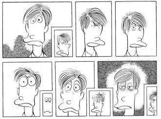 A la “crudeza” del humor se le suma también lo áspero del dibujo, muy limitado en comparación a otras obras de esa época. Casi no hay fondos, todos las figuras humanas que aparecen son monigotes… un trazo más cercano a sus obras más primerizas que a los complejos laburos que estaba encarando en sus últimas décadas como mangaka. Casi se podría decir que es un Tezuka en modo “heta-uma”, un estilo de dibujo que puede traducirse como “malo pero bueno”, de gran popularidad dentro de la revista vanguardista Garo, con King Terry y Yoshikazu Ebisu (quien, curiosamente, también tiene un manga sobre los salary-men) como sus principales referentes.