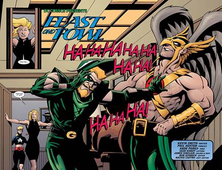 Flashback a varios años antes, cuando Mike Carlin (legendario coordinador de DC) lleva a Kevin Smith a recorrer las oficinas de DC en New York. Smith estaba trabajando en un guión para una película de Superman que nunca se filmó, y durante esa visita guiada se cruzó con el coordinador de la revista de Green Arrow, que en ese entonces era Darren Vincenzo. Así, de la nada, le tiró “el día que quieras ver a Green Arrow entre las 20 revistas más vendidas del mercado, pegame un llamadito”. Pasó un año, y cuando ya se había estrenado Chasing Amy (el primer largometraje realmente exitoso de Smith), Vincenzo convocó al guionista y se reunieron a intercambiar ideas. Pero en el medio, Smith ya se había comprometido a escribir Daredevil, los comics con sus personajes para el sello Oni, una nueva película (Dogma), y además se casó y tuvo una hija. Parecía que nunca iba a llegar el momento de verlo a Smith en Green Arrow, hasta que DC contrató al coordinador Bob Schreck, viejo amigo de Smith quien supervisara los comics de Jay & Silent Bob para Oni. Ahí todo se encaminó, y DC (que tomó nota de los problemas de periodicidad que tuvo Daredevil durante la etapa de Smith y Joe Quesada) anunció la serie cuando estuvieron entregados los seis primeros guiones del cineasta, guionista y a vece actor y conductor de TV.