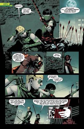 El canadiense se lanza con una saga de seis episodios, compleja, oscura, violenta, centrada en Komodo, un empresario/ arquero igual que Oliver Queen, pero villano. Komodo tiene una hija llamada Emiko muy parecida a Shado y dice haber asesinado a Robert Queen, el padre de nuestro héroe. Ollie, por su parte, pierde su empresa, su fortuna y se tiene que escapar de Seattle porque se lo acusa de un asesinato que (obviamente) no cometió. Sobre el final de este arco, Lemire nos revela quién y por qué orquestó la milagrosa llegada de Ollie a aquella isla en la que aprendió a sobrevivir… el enésimo retoque al origen del personaje.