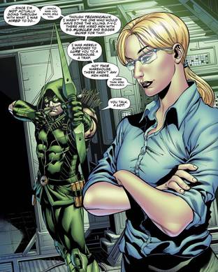 Pero como –de nuevo- hay que rellenar para que la aventura llegue hasta el nº40 (momento en que todas las series se interrumpen para la mudanza de DC a Burbank y el evento conocido como Convergence) los guionistas entran a tirar más y más personajes y así aparecen Roy Harper (a quien en esta continuidad no se lo consideraba sidekick de Green Arrow) y a Cupid, la pelirroja sexópata de increíble destreza con las armas, creada por Kreisberg en su anterior paso por esta serie, que también pertenece a la continuidad barrida bajo la alfombra por Flashpoint. ¿Y quién faltaba para pegarse aún más a la serie de TV? Sí, obvio: Felicity Smoak debuta en esta saguita y enseguida se convertirá en un personaje importante.