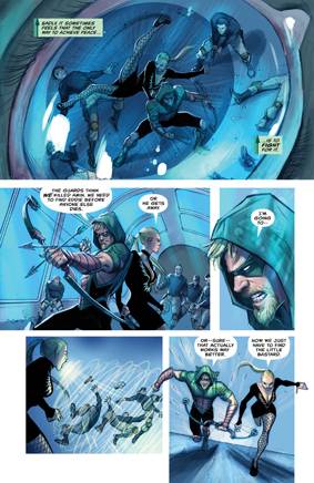 Vamos a ver qué nos depara la nueva serie en materia de argumentos, además del romance entre Ollie y Dinah. La primera sorpresa llega cuando ahora nos muestran a Emiko ya no como una nena de 9 ó 10 años, sino como una señorita de 13 ó 14. Pronto tendremos también los regresos de Shado y de Diggle (ninguneado por Percy en el tramo anterior) y –una vez más- una sucia tramoya de un ejecutivo de Queen Industries lo va a dejar a Ollie fuera de la empresa y sin un mango. Todo el despelote confluye en el Inferno, un mega-buque capitaneado por un villano no casualmente llamado Dante, entongado nada menos que con Emiko, quien traiciona a su medio hermano. El conflicto con Dante termina de explotar en el nº5 y al final… Ollie queda varado en una isla desierta. Sí, en serio.