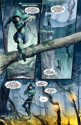 Hasta el nº17 vamos a ver poco más que un festival de violencia urbana fuera de control, con Green Arrow, Black Canary, Diggle y Emiko (ahora llamada Red Archer) a pura acción en las calles de Seattle y en el bosque de Sherwood. Sobre el final tendremos un combate contra Merlyn y muchas muertes escabrosas. Por suerte los dibujos están a cargo de Juan Ferreyra y Otto Schmidt, dos magos del lápiz.