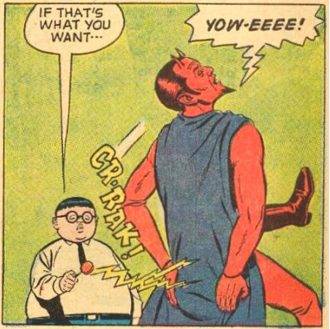 ¿De dónde saca los poderes Herbie? Nadie sabe con exactitud. Están ahí, aunque parece claro que algunos de los chupetines que tiene le dan poderes específicos. Y se convierten en su arma secreta. Si Herbie dice “Should bop you here with this lolipop” (algo así como “te golpeo con este chupetín”), es que te amenaza con echarte todo el poder encima. Y nunca conviene que Herbie haga eso. En un punto son sus espinacas, el alimento secreto que le da poder extra. Que el alimento sea además una golosina que todo profesional de la salud indica que comas con moderación, también deja claro que hay una amable tocada de upite a lo-que-un-niño-sano-debe-ser en esos años.