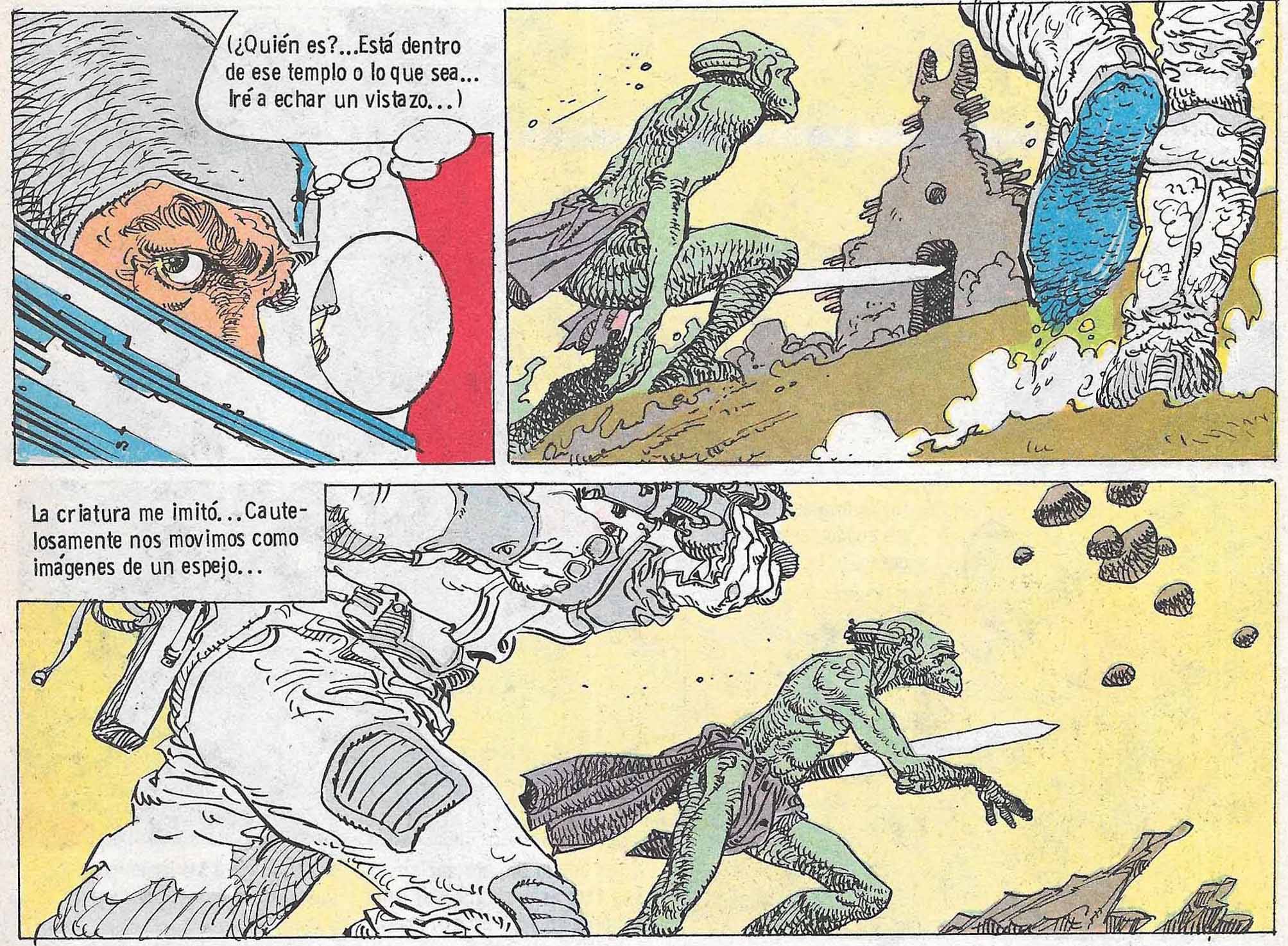 Quizás por éxitos resonantes como Nippur, Dago, Savarese, Martin Hel o Pepe Sánchez es que uno no asocia a Robin Wood con la ciencia ficción. Pero el gran guionista trotamundos incursionó en varias oportunidades en este género. De series inolvidables como Mark (con dibujos de Ricardo Villagrán) o Gilgamesh (donde relanza la idea del personaje que creara Lucho Olivera, con dibujos del mismo genio correntino), pasando por Starlight (con Juan Zanotto), o Danske (con Enrique Villagrán) y Morgan (con Cacho Mandrafina), hasta un Warrior-M (de sus últimas creaciones, junto a Roberto Goiriz), Robin siempre tuvo un interés por este género. En sus comienzos en Columba, cuando le dieran luz verde para escribir lo que quisiese, en varias oportunidades entregó unitarios de ciencia ficción (por ejemplo, en 1969 entregó nueve historietas de ci-fi, todas dibujadas por Guevara y publicadas en la Fantasía, con títulos como “Robot… robot…”, “El Cerebro”, Microorganismos”, o “Iram y el terrestre”), pero la historieta que hoy nos convoca surge cuando en los ’80 Robin decide volver a incursionar en el género, en busca de una nueva perspectiva. Surge así una serie rara y poco recordada, pero que vale la pena visitar por lo interesante de sus ideas y lo ecléctico de su dibujo.