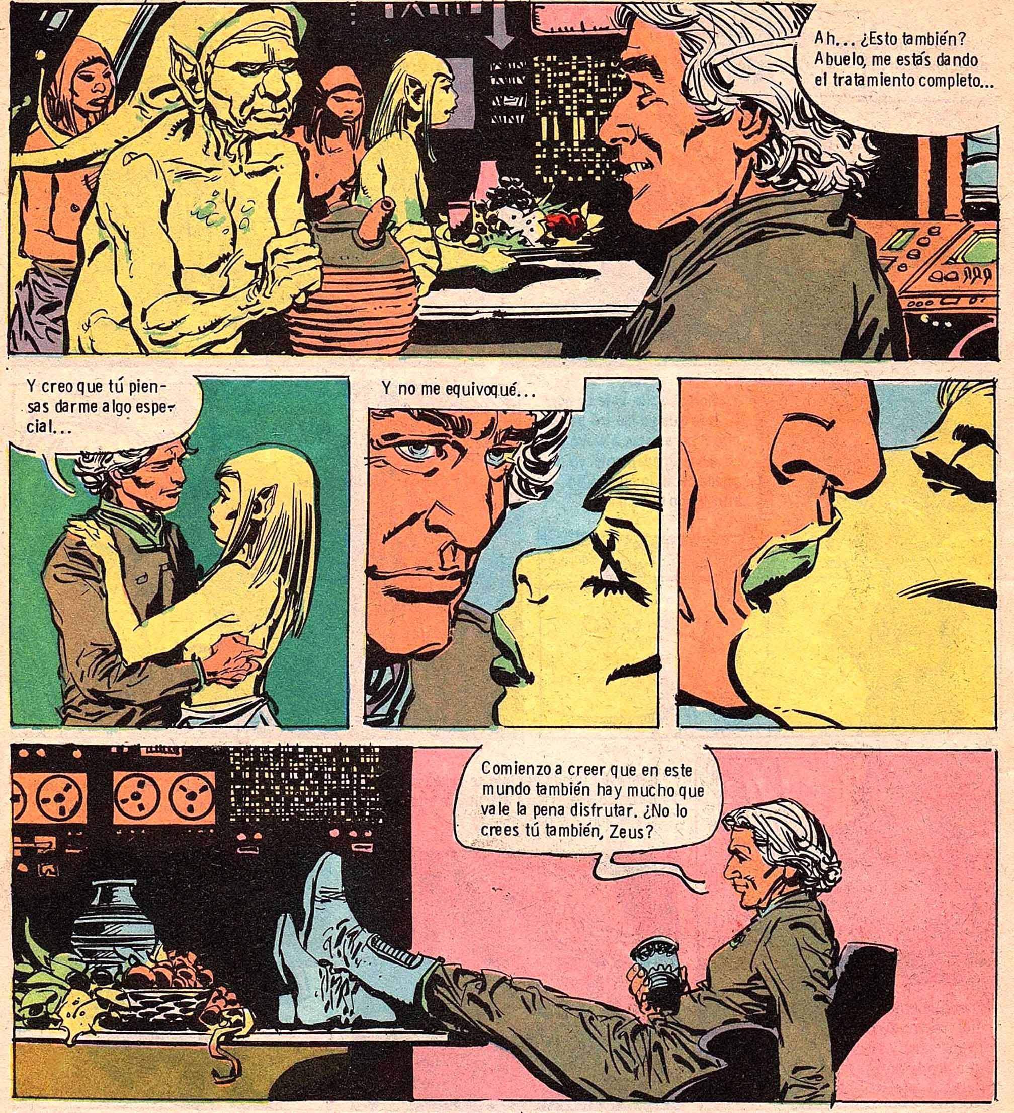 Volvemos a la D’Artagnan Color, al número 42 (del 30 de Agosto, es decir que se publicaron tres capítulos de Holbeck en ese mes) y encontramos "El Elegido", donde Wood deja en claro que en ese mundo, fuera de la nave, puede pasar cualquier cosa. Y generalmente cosas muy por fuera del canon establecido por la ciencia ficción. Acá Holbeck va a cruzarse con una raza de vampiras, con pterodáctilos de Arzach incluidos. Podríamos arriesgar que la ciencia ficción en Holbeck es una excusa para extrapolar a un personaje moderno y ubicarlo en un mundo de fantasy, en una tierra más cercana a la Espada y Brujería donde pueden aparecer razas de todo tipo sin más explicación. Aunque siempre está Zeus como co-protagonista, con quien Holbeck mantiene diálogos exasperantes y ese tecno-escenario de la nave donde refugiarse de la extrañeza del exterior.