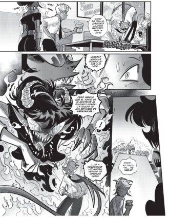 Pero, ¿qué es lo que hace que este título haya llamado tanto la atención en este último tiempo, obviamente más allá de su perspectiva feminista y de liberación femenina? En primer lugar, su propuesta visual. Desde su estética, Hot Paprika cuenta con un trazo totalmente relajado que se combina de manera muy correcta con escenas provocativas y eróticas muy caricaturescas que se acercan a un estilo generalmente más asociado al manga y al animé del tipo hentai y josei, es decir, para mujeres adultas. Ese camino en el medio entre el comic japonés y el estadounidense quizás sea la clave, puesto que si bien Andolfo emula una estética asociada al manga, propone una lectura de izquierda a derecha, algo que limita bastante a ciertxs lectorxs no habituadxs a la forma de lectura asiática oriental.