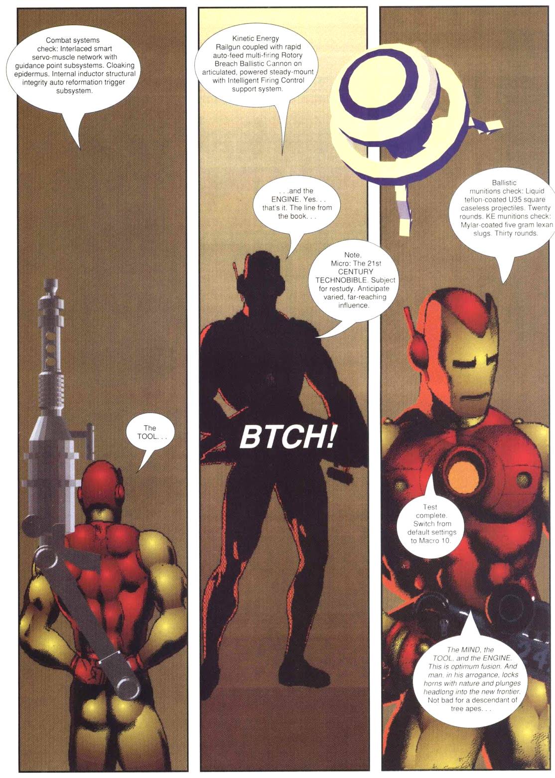 Nada que en verdad le interesara al autor, para entonces invitado por Marvel Comics a incluir una novela gráfica digital en su línea adulta Epic. Saenz acepta y elige como protagonista al célebre Iron Man: “Anthony Stark es el más tecnológico de los personajes Marvel –declaró en una entrevista promocional-. Sus poderes no se deben a ninguna mutación genética y además hubo un tiempo en que contribuyó al desarrollo militar”.