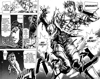 El Artista de historieta debe sentir apego por su narrativa; si siente pasión por esto, el lector se va a ver compenetrado con la historia y el dibujo. Araki logra mezclar ambas partes de forma icónica.