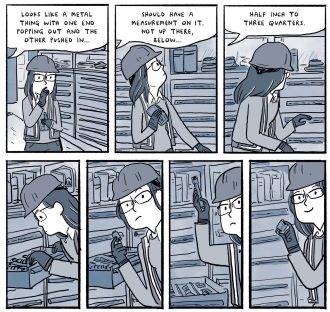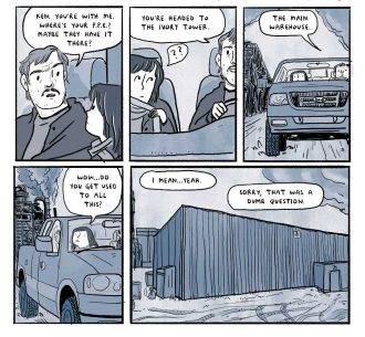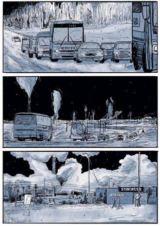 Se imaginarán que una chica de veintipocos, en un campamento de extracción petrolífera al norte de Canadá, no es una combinación que suene del todo normal. La obra que inicialmente comenzó también como un webcomic en el 2014, fue desarrollada en su totalidad en un libro de más de 400 páginas donde la autora da rienda suelta a contar su experiencia en ese ambiente sectario y machista, y se encarga de hacer una doble crítica.