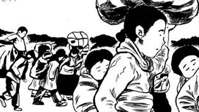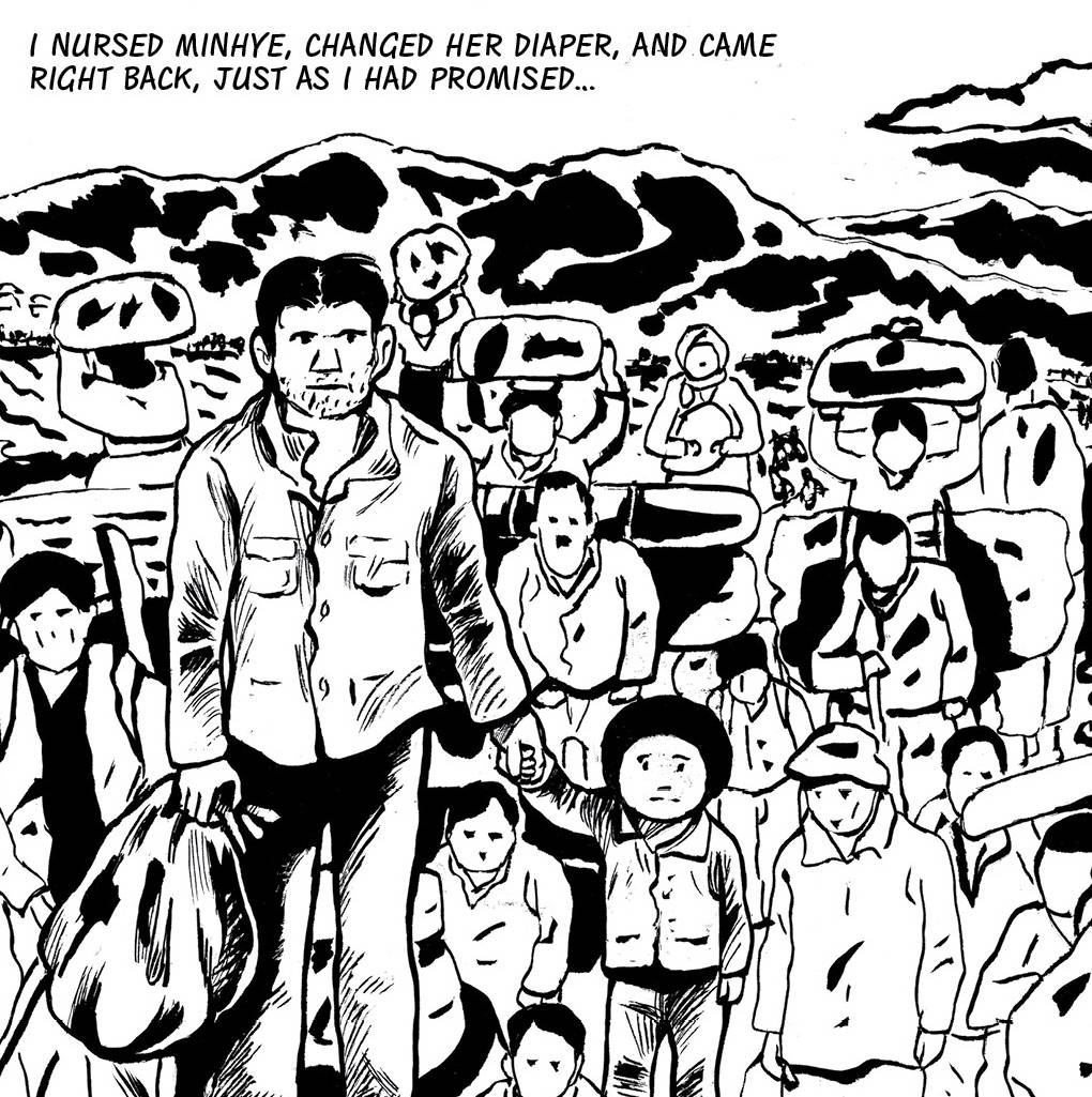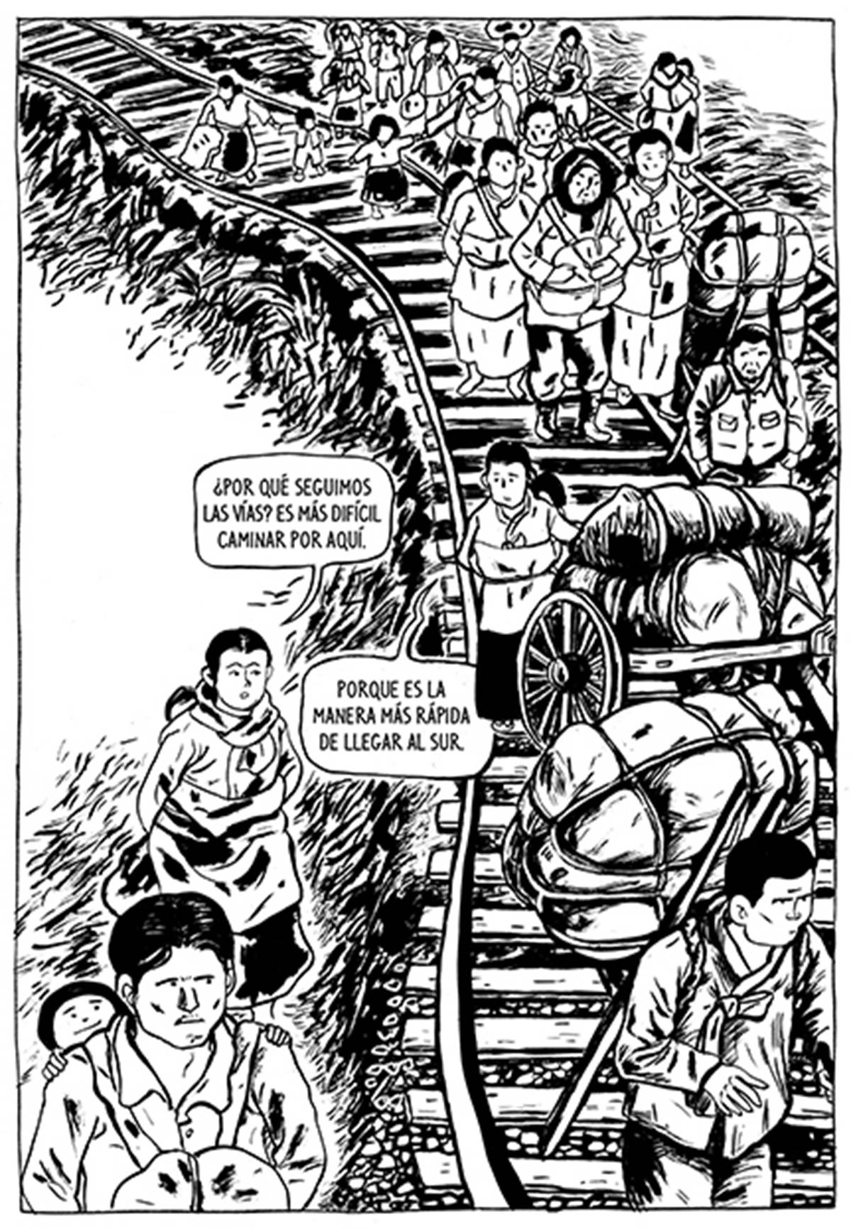 He aquí el nudo realmente dramático de la novela gráfica de Gendry-Kim: viñetas en las que la protagonista describirá el exilio y la migración forzosa hacia tierras lejanas y desconocidas. Será, en ese camino en el que no se le permite mirar atrás, cuando Gwija conocerá el significado de la tragedia al perder en un abrir y cerrar de ojos a su hijo, que caminaba junto a su padre. El hecho ocurrirá cuando Gwija decida hacer una breve parada estratégica para alimentar a su hija de brazos, quien se encuentra hambrienta. Cuando termine de amamantarla, Gwija ya habrá perdido de vista al resto de su familia.