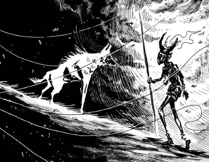 Sin embargo, las hienas tienen orgullo y Alcatena lo plantea desde sus primeras historias, las cuales se vuelven un faro para Namono, la hiena que -a lo largo de las páginas- se perfila como la verdadera protagonista. Alcatena establece dos mitos fundacionales: la historia de una hiena que se convierte en la ‘ primera loca’ al imponerse ante sus rivales felinos; y la hiena salvadora que ilumina el mundo para volverse el sol que le concede vida a toda la fauna de la sabana. Serán esos relatos iniciales, narrados por la madre de Namono, los que la guiarán en su aventura, más allá de los límites de lo conocido para las ‘locas’, donde el horizonte señala el fin del mundo.