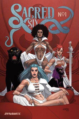 Todo ese desarrollo a fondo de cada secundario, le sirve a Priest para ir preparando el terreno para lo que vendrá más adelante, y que le va a dar la oportunidad de seguir trabajando con esos mismos personajes, pero en un título aparte, por fuera de Vampirella, aunque estrechamente relacionados. Dicho título se llamaría “Sacred Six”, y sería el primer spin-off de ésta etapa de Vampirella, que reuniría a una selección de aliadas y enemigas de Vampirella, bajo un objetivo común. Lilith, Nyx, la nueva Draculina (una ex amante de Vampi, quien tuviera un romance muy fugaz con ella en los primeros números de la serie principal), Pantha, Chastity (la misma de la antigua Chaos Comics, creada por Brian Pulido), y por supuesto, la propia Vampirella. Priest también escribe este título, aunque ésta vez es acompañado por Jae Lee.