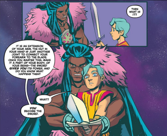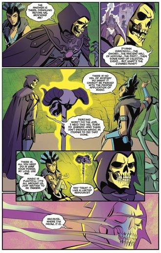 En el nº2 se revela que Skeletor está muy interesado en descubrir cómo comunicarse con el Orlax para descubrir todo lo posible sobre el pasado de Grayskull y Eternia, y tenemos un largo flashback a su origen en el planeta Apollyos. Acá debemos hacer un apartado ya que Kevin Smith prefiere dejar de lado todo el tema de Skeletor/ Keldor y se centra exclusivamente en lo estipulado en el primer minicomic de Mattel, en el que el villano quiere abrir un portal para que lleguen a Eternia sus propios congéneres. Esta idea se refuerza con la aparición en la segunda parte de la temporada del “Savage He-Man”, que también es el que inicia la historia de ese librito.