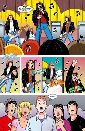 Casi podríamos decir que lo de Segura en este especial es una carta de amor al punk de finales de los ´70, pero sobre todo un hermoso homenaje a The Ramones. Para hacerla corta y sin contar demasiado (porque me parece que este es uno de esos comics que se tienen que leer) los Archies nuevamente participan del torneo de bandas y les va como el ojete, suenan para el orto y se dan cuenta que la banda no está yendo para ningún lado. Entonces, cuando Archie está a cinco minutos de mandar todo a la mierda, aparece Sabrina con un vinilo del primer disco de los Ramones y le dice que se lo deja para que le sirva de inspiración. Archie lo pone en el tocadiscos y ante los primeros acordes “Hey! Ho! Let’s Go!”, él y su banda son transportados a la New York de 1976 donde los Ramones son jurados de, justamente, un torneo de bandas. Y no les cuento más porque ya les dije que quiero que lo lean y lo disfruten como lo hice yo. Hacía tiempo que un comic no me emocionaba como consiguió hacerlo este.