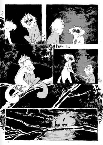 La fantasía, la admiración y el misterio, es el punto de partida de Alcatena para imaginar el mundo de Manos Horribles, en el que nos adentramos poco a poco. Las páginas siguientes maravillan por la gran diversidad de criaturas que pertenecen al animalario de Alcatena. Dinosaurios, aves, animales marinos y mamíferos prehistóricos tienen todos su lugar en la galería su animales. Entre todas las criaturas, identificamos al extraño dinosaurio/ave Manos Horribles y a unos inquietantes animalitos con un ojos grandes y que brillan en la acromía del blanco y negro, los “trepadores”, que nos recuerdan a los actuales lémures.