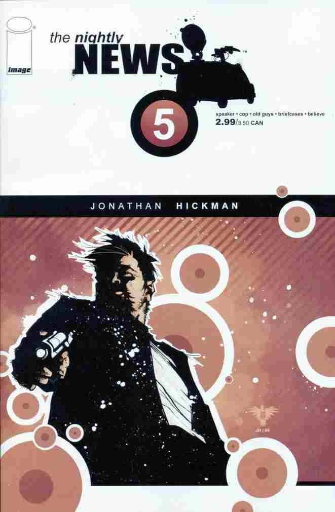 Antes de ser el respetado autor cuya sola presencia en la portada de un comic genera ventas, expectativas y multiplicidad de premios, Jonathan Hickman era un arquitecto que trabajaba como diseñador gráfico y quería entrar en el mundo del Noveno Arte. Tras algunos intentos frustrados, toma la decisión de volverse autor completo y tenemos así esta historia publicada por Image entre Noviembre de 2006 y Junio de 2007. “Nightly News”, en sus seis entregas, nos cuenta sobre una agrupación terrorista (“The Hand”, nada que ver con la organización ninja marvelita) liderada por el enigmático “The Voice”, quien tiene como objetivo matar periodistas en forma indiscriminada para así denunciar la manipulación de los grandes monopolios mediáticos y sus mentiras que afectan a tantas personas inocentes (tal vez hubiera sido menos trágico que la organización se encargara de denunciar con pruebas esas mentiras, pero bueno, se ve que a La Voz no se le ocurrió).
