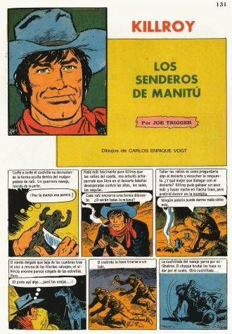 Killroy: En este western el protagonista es un cowboy honrado que no gusta de lujos y se hace amigo de un navajo de nombre Numokh y un trampero llamado Reno. Sus aventuras empiezan en el pueblito de Flecha Town donde a pedido del pueblo se quedan para ayudar y se convierten en los segundos del sheriff van Dyck. Por como vienen los títulos –y la onda general de esta etapa de HGO-, especulo que tanto el indio como el trampero deben haber muerto para salvar a Killroy en algún episodio. - Primer Capítulo: Los Senderos de Manitú (24/5/72). Publicado en: El Tony Anual 11 (1/73). Extensión: 53 episodios. Dibujantes: Carlos Vogt (1-3, 5-19, 22 y 32), Francisco Pascual (4, 27, 31, 33-39 y 41-53), Horacio Merel (20-21, 23-26 y 28-30) y Barrera (40).