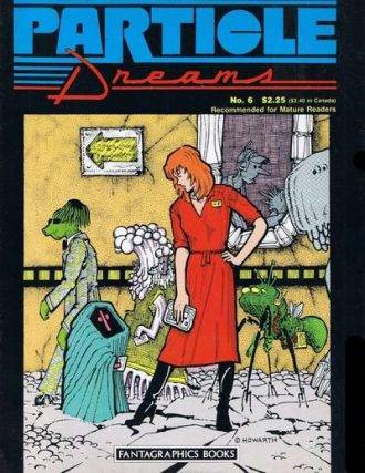 Con esto en mente y un poco con el diario del lunes de 1986, resulta rarísimo que Fantagraphics se interesara lo suficiente en Howarth como para ofrecerle una antología, incluso si queremos pensar que la editorial de Gary Groth y amigos pretendía tener una suerte de “canon” historietístico a nivel narrativo y gráfico. Lo de Matt es raro hasta en su dibujo, desprolijo por momentos y pulido en otros (los menos quizás, pero esto es más subjetivo), limitado en el uso de expresiones faciales pero con interesantes usos del claroscuro (toda la revista es en glorioso blanco y negro), a veces escaso en fondos y otras con un nivel alto de detalle y diseño de naves y bichos originales. Pero así fue, y Particle Dreams salió seis veces entre el ´86 y el ´87. A razón de tres historias cortas por número, el dibujante metió la ciencia-ficción en la editorial alternativa más importante de los últimos 40 años.