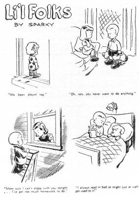 Entre 1947 y 1950, Schulz vendió 17 caricaturas al Saturday Evening Post. Durante ese período, además, realizó un comic semanal de una sóla viñeta llamado Li’l Folks para el St. Paul Pioneer Press –que incluía embriones de lo que luego serían personajes de Peanuts. Aunque de hecho, aparecía solamente cuando el editor podía hacerle lugar. En principio había pensado en una tira de acción, pero comenzó a dibujar niños porque eso era lo que parecía vender más. Eventualmente se aventuró a solicitarle más dinero al editor. ¿Su respuesta? “No”. ¿Y qué tal si le da a Li’l Folks un espacio regular en la página de comics? “No”. ¿Entonces quizás debería dejar de hacerla del todo? “Bueno, dejémosla.”