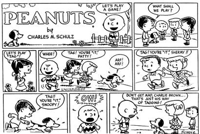 Ese fue el último gran bajón de Schulz. Cuando su trabajo fue seleccionado por United Feature Syndicate, se decidieron por la nueva tira de cuatro viñetas en la que había estado trabajando. Ésta era bastante similar al panel, pero tenía un elenco de personajes definido en lugar de diferentes niños sin nombre. Quizás el nombre se habría mantenido de no ser por su similitud con otros dos comics de la época: Li’l Abner de Al Capp y la ya olvidada Little Folks. Para evitar confusiones, el sindicato le puso el nombre de Peanuts, un título que al autor no le agradaba porque, según él, carecía de dignidad.