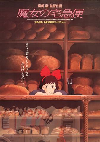 La cuarta película dirigida por Hayao Miyazaki para Ghibli, El delivery de Kiki (1989) es una adaptación libre de una conocida novela de la escritora japonesa Eiko Kadono, y tiene como protagonista a Kiki, una aprendiz de bruja de 13 años de edad. Al comienzo de la historia, Kiki se está preparando para seguir una vieja tradición: dejar su hogar y su familia durante un año y completar su entrenamiento en otra ciudad en la cual no haya una bruja residente. Acompañada solamente por Jiji, su inseparable y mordaz gato negro, Kiki se establece en un pueblo costero, pero las cosas no son tan fáciles como ella suponía. Todas las brujas están especializadas en alguna habilidad en particular, tal como leer la fortuna o preparar pociones mágicas, pero Kiki sólo sabe volar en su escoba, y ni siquiera eso lo hace muy bien. Además, en el pueblo nadie parece necesitar los servicios de una bruja. Sin habilidades especiales que se puedan vender, sin un lugar donde vivir, y con poco dinero, Kiki se ve en problemas para cumplir sus objetivos. Finalmente encuentra alojamiento en el ático de una panadería, y comienza el único negocio que puede realizar con su habilidad: un delivery aéreo. Mientras recorre la ciudad haciendo diversas entregas, Kiki va conociendo gente interesante de toda clase, mientras atraviesa por una serie de aventuras e infortunios y aprende a depender de sí misma.