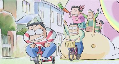 No es de extrañar que el material de origen haya llamado la atención de Takahata, considerando que es un reflejo de sus temas favoritos: la familia y la vida simple. El punto en contra es que una tira cómica no es el mejor formato para un largometraje de casi dos horas de duración, y el verdadero desafío de la película es mantener el interés del espectador a pesar de la falta de un argumento central. Si bien los cortos son entretenidos y fáciles de disfrutar, el ritmo comienza a decaer hacia la mitad; tampoco ayuda que la segunda mitad de la película contiene los segmentos más largos y menos humorísticos. La ventaja es que la falta de continuidad entre los cortos te permite verlos por separado en caso de que la película se te haga demasiado larga.