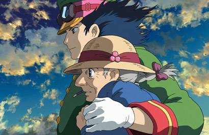 Por supuesto, en lo visual la película es un festín, con un perfecto balance entre la animación tradicional y el uso del CGI, y una paleta de colores brillante y variada. Ambientes como el dormitorio de Howl o el palacio de Madame Suliman, además de los paisajes, muestran un esplendor visual que llega a niveles alucinantes. Esas mismas manos expertas logran construir un personaje entrañable con un poste y una cabeza de nabo, y logran darle vida a una llama con un par de ojos y una propensión a compartir una porción de todo lo que cocina. Pero el más grande logro a nivel artístico es el castillo, una de las creaciones más bizarras, extraordinarias e ingeniosas que se hayan visto, con sus patas mecánicas que se asemejan a las de un ave, sus detalles arquitectónicos que sugieren rostros humanos y sus extrañas proporciones.